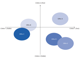 Le mapping concurrentiel permet donc d'économiser de manière simultanée de votre marque par rapport aux concurrents.
